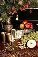 kľúčové slová: dekorácia, hodiny, ovocie, sviatok, sviečka, svietnik, Vianoce, vianočný stromček